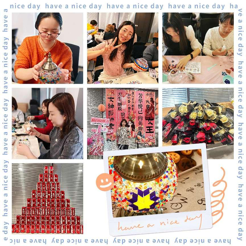 天津咨詢本部工會和建設招標公司工會組織了“指尖上的藝術盛宴,女神的專屬時光”馬賽克土耳其臺燈DIY活動。在專業老師的指導下,女職工們挑選自己喜歡的馬賽克瓷片,通過拼貼、黏合等工藝,將一塊塊小小的馬賽克瓷片變成美麗的臺燈裝飾。大家自由發揮創意,從顏色的搭配到瓷片的排列方式,每一個細節都展現了個人獨特的審美和魅力。活動最后,女職工們紛紛點亮自己的燈光,在浪漫迷人的燈光中合影留念。