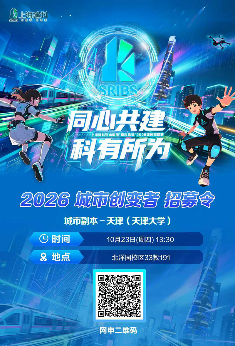 同心共建 科有所為天津工程咨詢有限公司啟動2026屆校園招聘 更新時間:2025-10-22 點擊:47 所屬欄目:公司新聞 誠邀2026屆畢業生參加城市專場宣講會(天津大學) 簡歷投遞方式 郵箱:tec_hr@sribs.com 電話:022-88365660 “我與天津咨詢的相遇” 2026屆校園招聘主題vlog