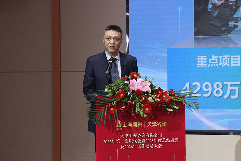 公司黨委副書記、總經理朱震作2025年度工作報告,動員部署2026年重點工作任務。2025年,天津咨詢在上海建科咨詢集團、天津國興資本雙方股東的堅強領導與支持下,新班子強化黨建引領,錨定全年目標,緊緊圍繞“融合發展”工作主基調,全力推進“二穩六進三破局”措施落實,團結帶領廣大干部職工凝心聚力、踔厲奮發,完成主要績效考核目標,發展基礎更加穩固,創新機制日趨完善,運行質量穩步提升,為“十五五”高質量發展奠定堅實基礎。2026年,將重點抓好“五個聚焦、五個強化”重點任務,全力推動“十五五”發展規劃實施,努力實現2026年各項工作目標任務,進一步解放思想、開拓進取,協同奮進,聚力啟航,全力以赴開啟“十五五”高質量發展新篇章。