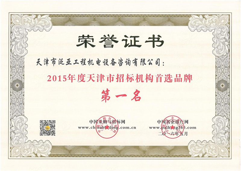 2015年度天津市招標機構首選品牌第一名