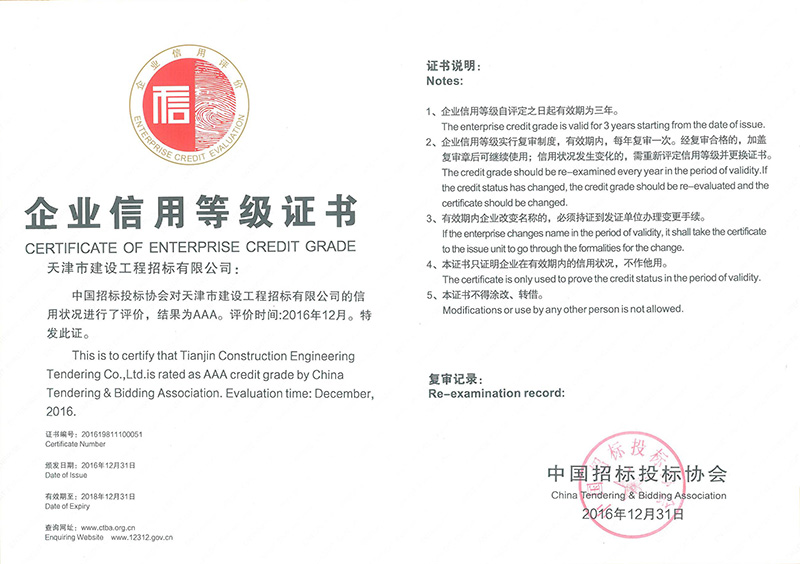 中招協信用等級證書-AAA