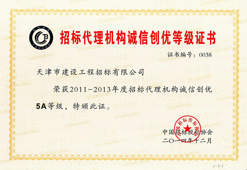 2011-2013年度招標代理機構誠信創優5A等級
