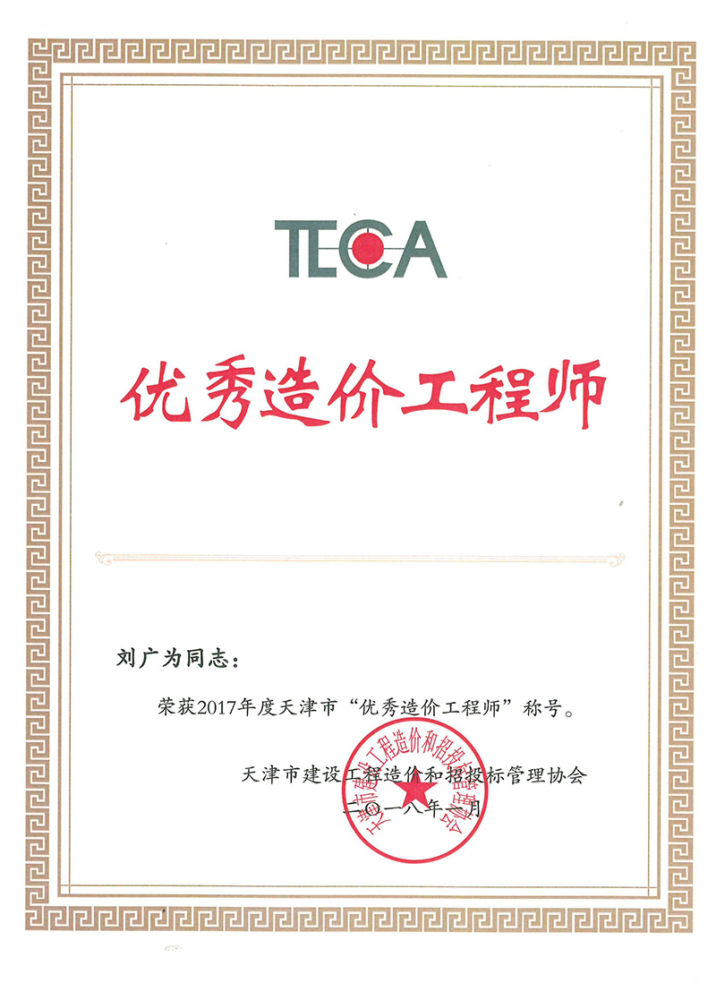 2017年度天津市優秀造價工程師